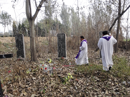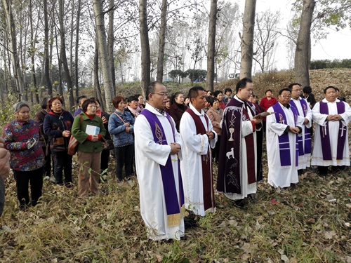 11月是炼灵月,教会鼓励教友追思亡者,为亡者祈祷、献弥撒、行善功、得大赦等,特别是1日至8日每天到墓地祈祷者均可得一全大赦,新乡教区自李建林神父当选教区长后每年都会组织神父、修女与教友到教区墓地扫墓为教区已亡前辈祈祷。本月4日,在教区长带领下6位神父、2位修士、3位修女与200余教友到王村教区墓地祈祷,在纪念亡者的同时也提醒众教友们时刻牢记生者亡者同为基督奥体肢体,他们的今天就是我们的明天,我们当善尽本分、灵魂安康,我们正走在教区前辈的足迹上,他们留下的精神财富正是我们凝聚的力量。